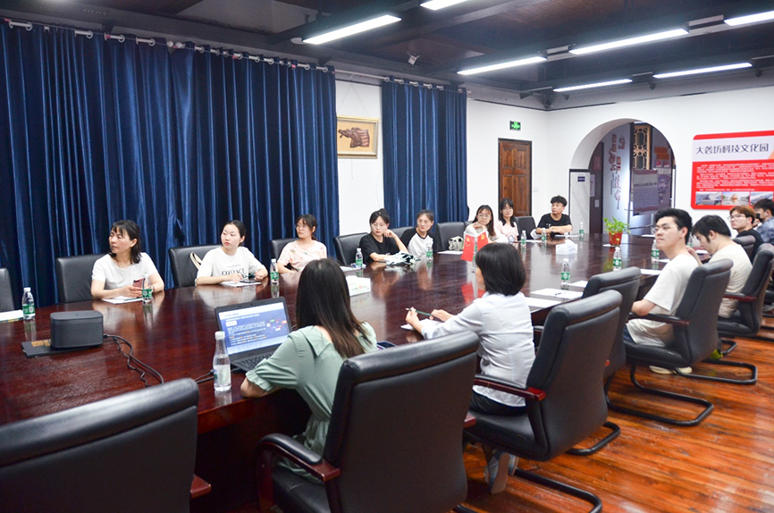 隨后,園區(qū)開展產(chǎn)學(xué)研習(xí)交流會,會上向調(diào)研組系統(tǒng)的介紹了園區(qū)文化歷史、產(chǎn)業(yè)分布、運(yùn)營特色等,并針對學(xué)生的疑問進(jìn)行解答。